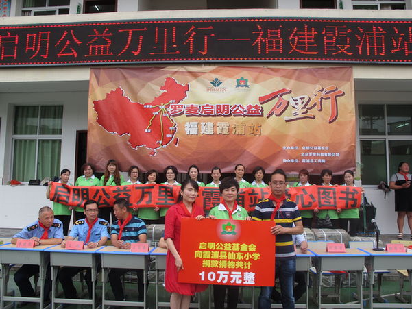 6月19日,启明公益万里行走进福建霞浦,启明公益基金会、罗麦科技福建分公司及爱心志愿者一行不顾连日大雨,沿着延绵山路来到了霞浦县溪南仙东小学,为学校捐赠十万元图书。