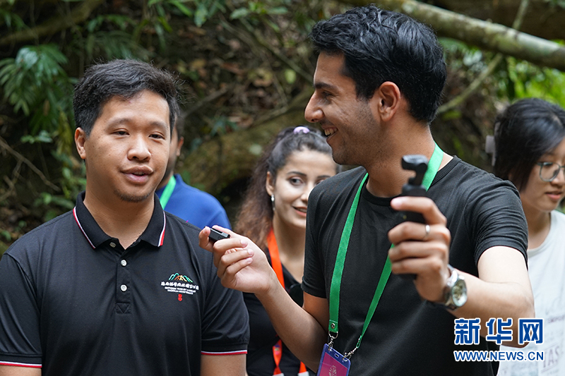 采访团成员在海南热带雨林国家公园五指山片区拍摄自然植被。新华网发(刘正 摄)